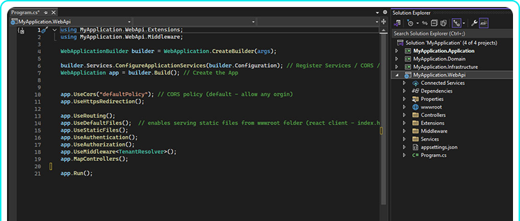 Launch unlimited ASP.NET projects using a powerful CLI, clean architecture, multi-tenancy, and production-ready infrastructure. Instantly scaffold fully featured services and controllers. Backed by comprehensive documentation and ready-made UI options for Vue, React, and Razor Pages.
